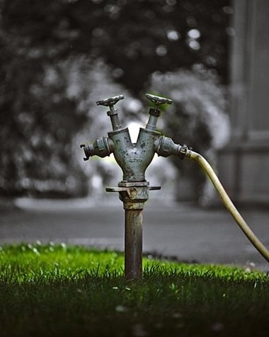 左はよく見かける典型的な水やりのシーンです。