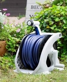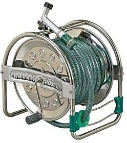 鉄やステンレスなら多少重量があるため動くことが少ない。ホースリールは軽いより重い方がいいです。