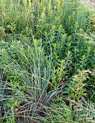 葉を横に広げて徐々に上へと伸ばす。そのため群生しだすと葉が入り乱れて穂がどの株から出ているのか分かりません。