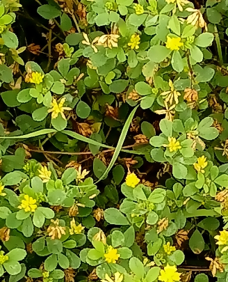 ツメクサといえばシロツメクサのクローバーが知られています。これは米粒と名付けられるほどの小さな葉と花。